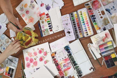 WORKSHOPS COMMISSIONS INSTAGRAMBased in Singapore, SplashRunway hosts Watercolour & Brush Lettering Workshops for intimate private events (bridal parties!), large corporate events (staff bonding activities), and publicly at The Art Faculty. As a watercolour and design brand, SplashRunway works closely with clients for Commissions & Custom Work, such as wedding decorations, wedding invitations, personalised gifts, and cards. Besides offering Live Calligraphy services at events and special celebrations, we also offer Live Watercolour Painting performances. Topics include watercolour florals, galaxies, landscapes, and more.